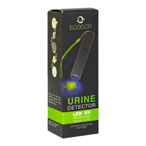 El detector de orina Ecodor (recargable) es la solución perfecta para detectar manchas invisibles de orina de mascotas. Su avanzada tecnología UV-LED hace visibles al instante las sales de orina secas, permitiendo una limpieza dirigida con UF2000 o UF2000 4Pets.
